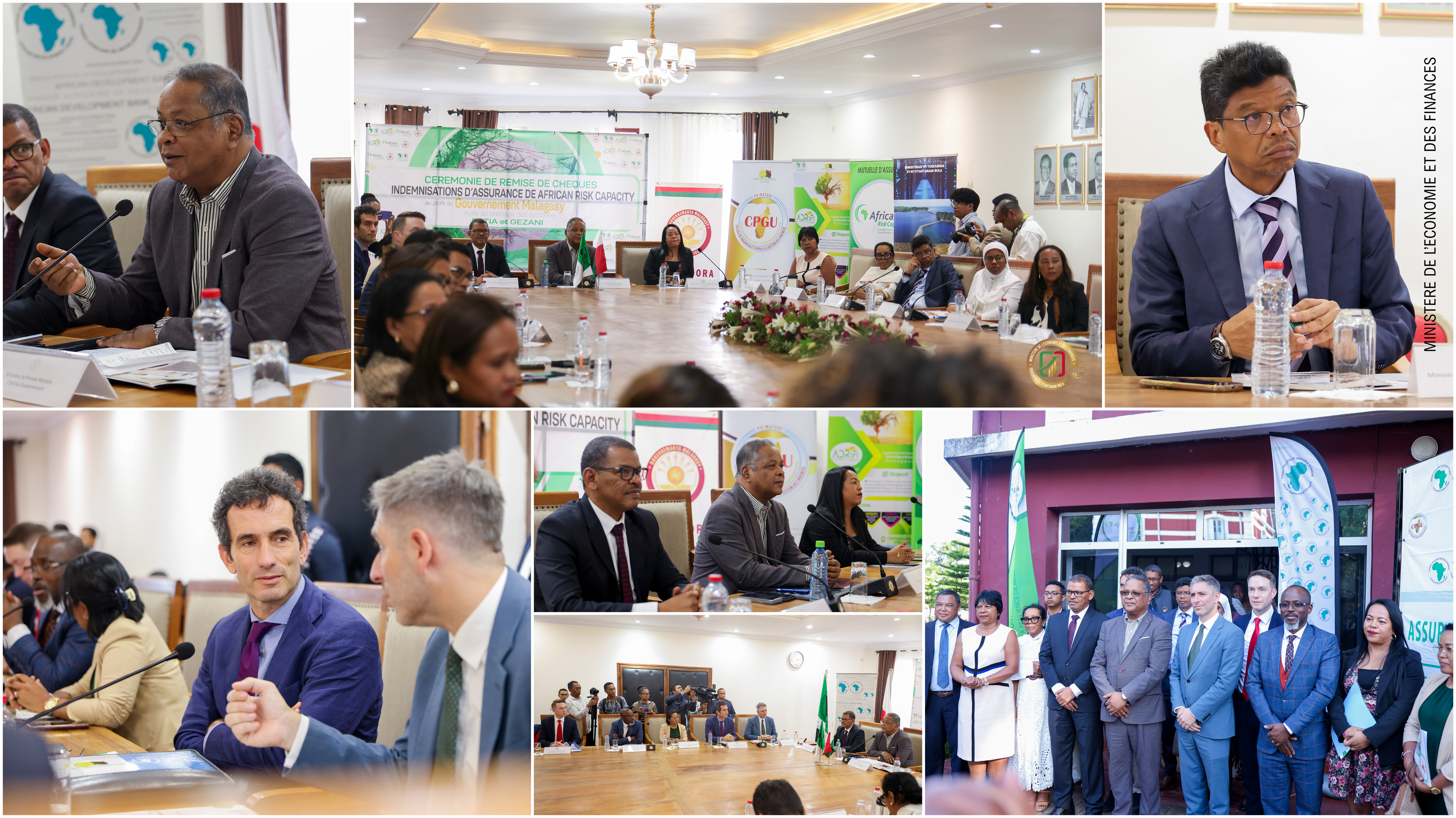 Mahazoarivo, 05 Mars 2026 - Présidée par le Premier Ministre, Herintsalama Rajaonarivelo, la cérémonie de remise de chèques d'indemnisations d'Assurance de l'African Risk Capacity (ARC), d'un montant de 9 millions de dollars, s'est tenue aujourd'hui, en présence du Ministre de l'Économie et des Finances, Dr Herijantovo Ramiarison, du Représentant Pays de la Banque Africaine de Développement à Madagascar, monsieur Adam AMOUMOUN, le Directeur Exécutif par Intérim de l'ARC Ltd, l'Adjoint du Représentant Résident du PAM à Madagascar et de plusieurs membres du Gouvernement.